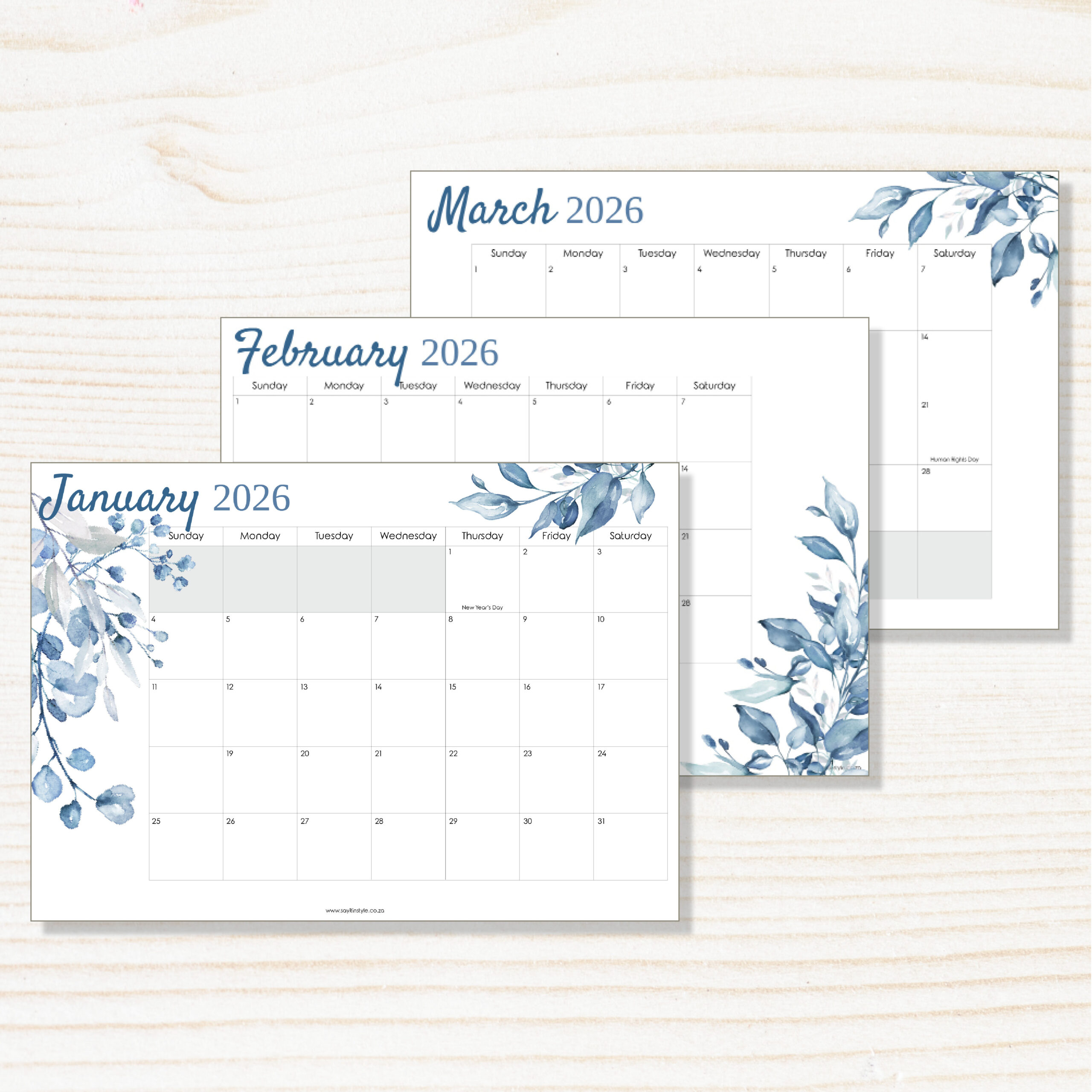 The Petal Play Monthly Calendar comes as individual sheets with magnets on each sheet to hang on the fridge. The South African public holidays and limited religious holidays are included.