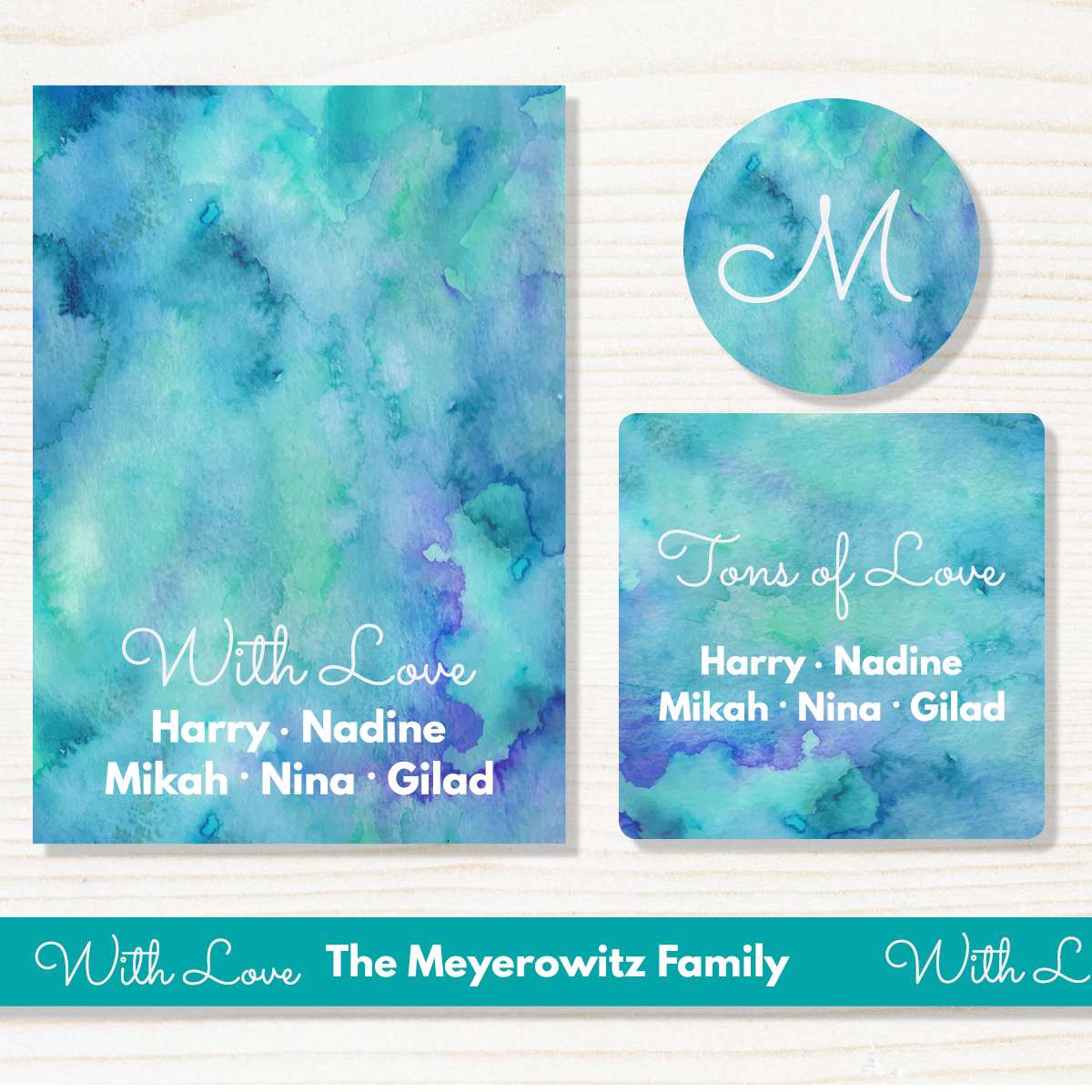 • Bulk Package - R900 50 x Premium Stickers, 24 x A7 cards & envelopes/twine, 50 metres of printed ribbon (15mm width)